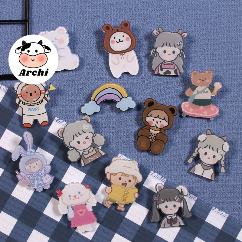 Phụ kiện cài trang trí áo, balo, túi ví hình gấu nhỏ mix cô gái bunny free ship